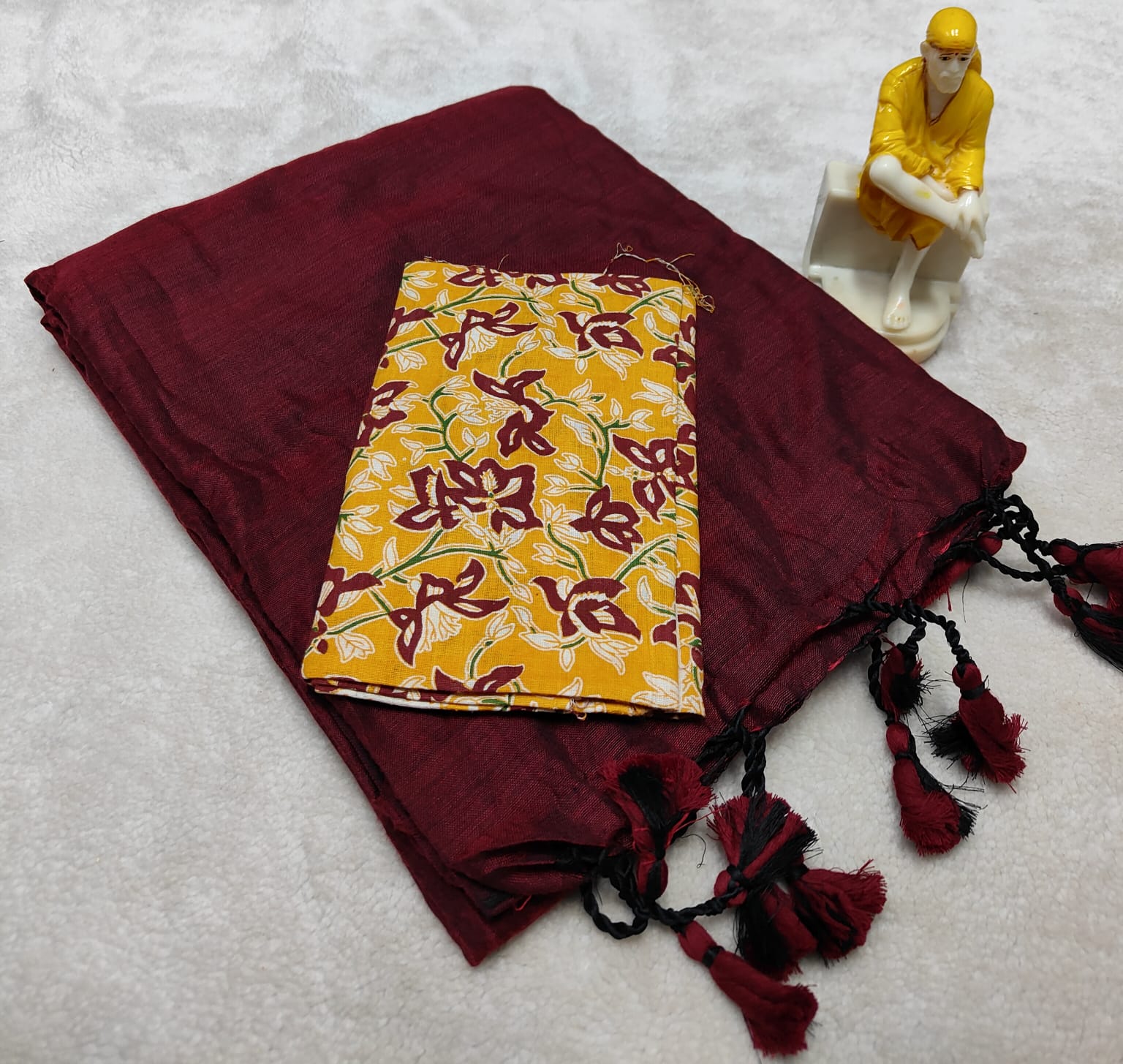 The beauty of this collection lies in its simplicity — a graceful plain Khadi cotton body paired with a free attractive Kalamkari printed blouse, adding a vibrant artistic touch to your look. The lightweight weave ensures all-day comfort, while the premium finish gives you a classy, timeless appearance.