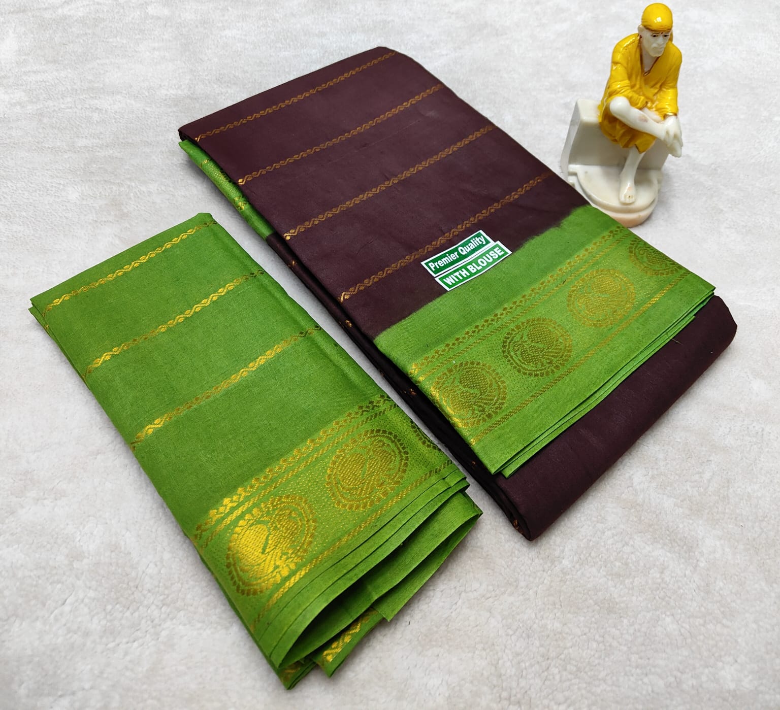 These are not defects. They are living proof of handmade craftsmanship — marks of a saree that has been touched by human hands, sun, water, and tradition.