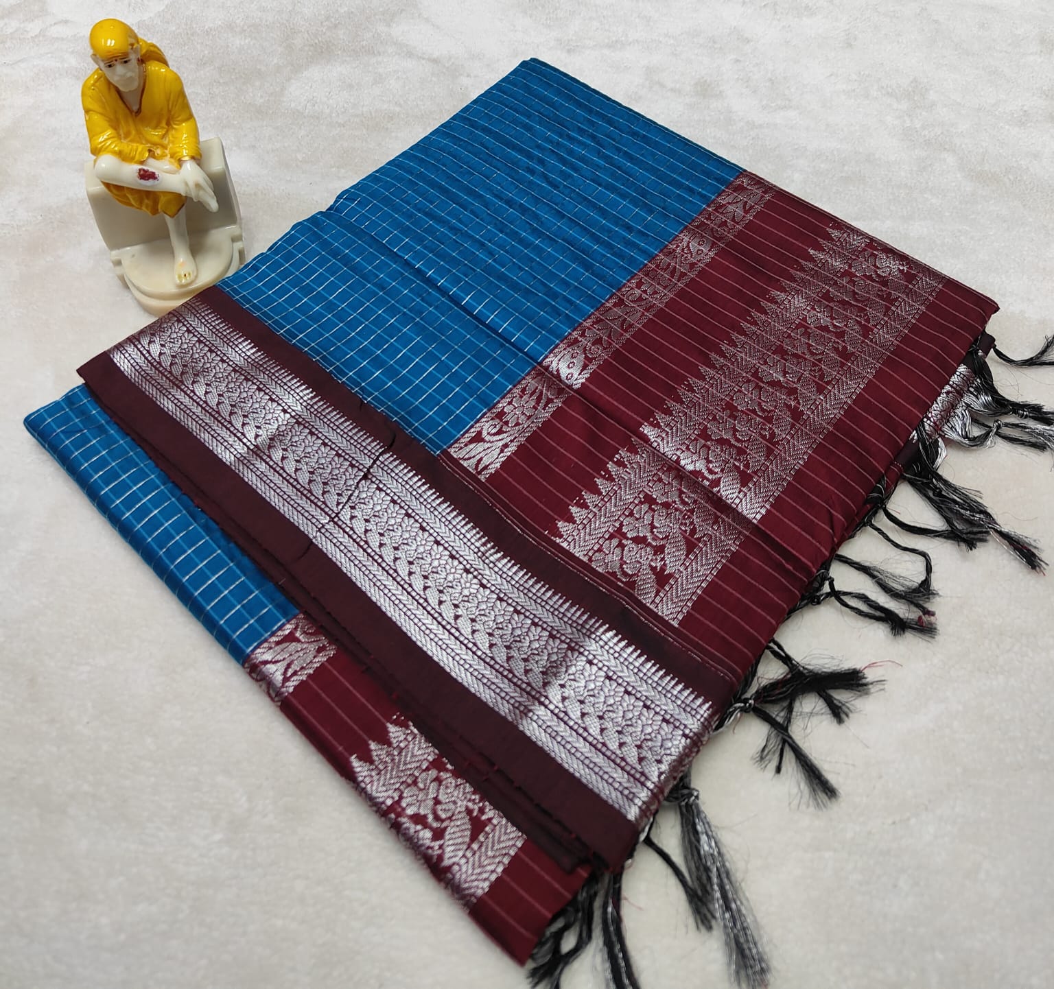 Wrap yourself in elegance with this beautifully crafted Kalyani Cotton Saree, featuring classic Lata Gadwal Paithani checks. Made from soft acrylic cotton, it offers a lightweight, smooth, and breathable feel, perfect for all-day comfort.