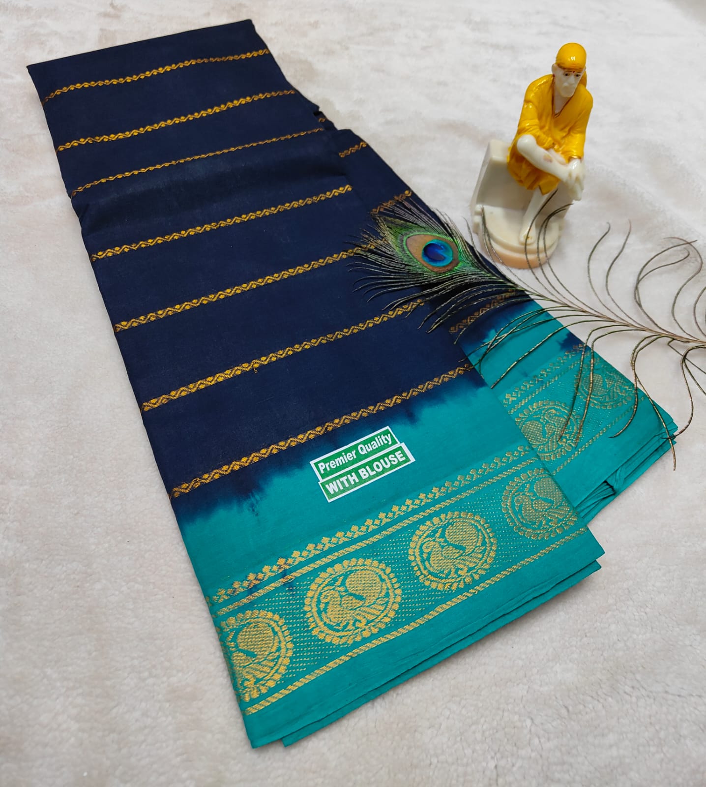 Crafted with patience, tradition, and generations of skill, our Sungudi pure cotton sarees celebrate real artistry in its rawest form. Each saree is lovingly handwoven and hand-dyed using age-old techniques, then naturally dried along river banks — just like it has been done for centuries.